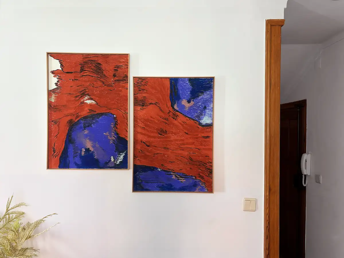 In the series “Dreamscapes”, Carolina questions the limits of our spatial understanding. In my daily life, I grab my morning matcha or filtered coffee and catch this painting in my peripheral vision, appearing different every morning than it did the evening before. I see the mist that doesn’t settle. A mist that does not settle but that somehow brings familiarity. It’s an artwork where patience is taught and where one can get comfortable with ambiguity, as we get comfortable with a foggy morning.