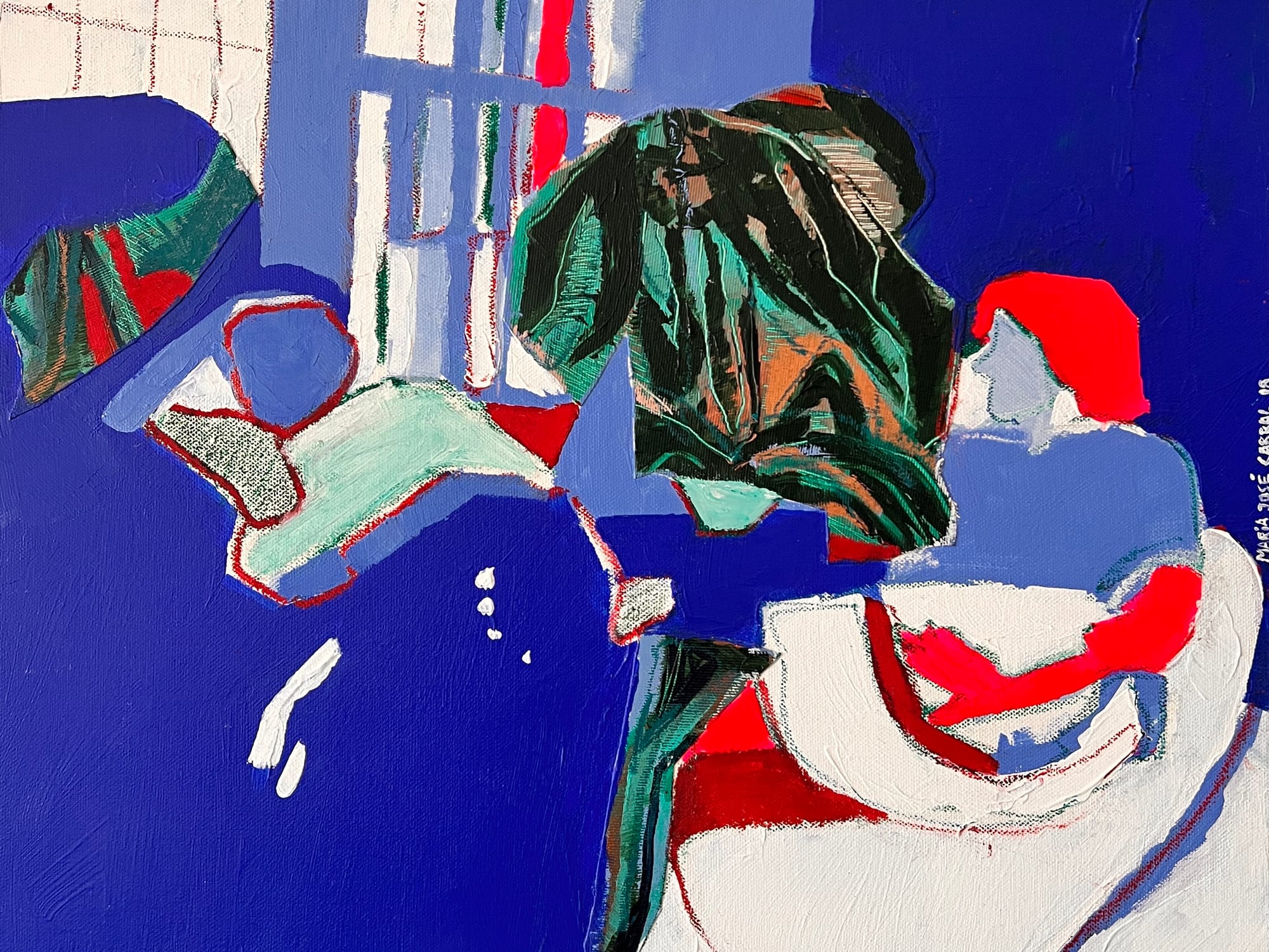 Maria José Cabral (Lisbon, 1993) is a contemporary artist based in Lisbon, Portugal, recognized for her vibrant layered paintings on both canvas and paper, which explore the dynamic interplay between imagination and reality. Her work is deeply rooted in themes of memory and dreams, capturing fleeting moments that hover between the conscious and unconscious. Working primarily with acrylics, Maria José’s style is defined by her bold and extensive use of color, creating immersive scenes where vivid hues merge fluidly with dreamlike forms.